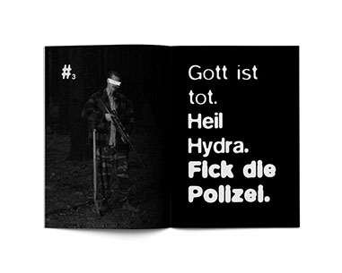 Infolge der medialen Revolution der vergangenen Jahre hat jeder Stiesel die Möglichkeit, sich anderen mit wenigen Klicks online mitzuteilen. Heinrich Hass und Naughty Neitscho setzen mit ihrem neuen Faszien ein Statement dagegen. Ihr Debüt beinhaltet drei autobiographische Texte von Heinrich Hass, die jedem Stereotyp einiger in Köln lebender Sauerländer gerecht werden: Größenwahn, Drogenexzesse und beknackte Freunde. Das Heft fällt mir seinen 24 Seiten sehr dünn aus, wobei jede Doppelseite individuell und recht aufwändig gestaltet ist. Renommierte lokale Fotografen wie Stefan Braunbarth und Jonathan Fuss sind für die gut inszenierten Fotografien des Autors verantwortlich. Die kleine Auflage von sechzig Exemplaren mag den unverhältnismäßig hoch wirkenden Preis erklären. Alles in allem ein sehr gelungener Auftakt. Man darf rätseln sein, welcher Kölner Autor in der Folgenummer gefeatured wird …