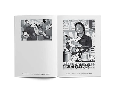 Die Dichte stabiler Graffitis nahm auf Höhe Arnsberg/ Neheim-Hüsten in Richtung Dortmund beständig zu. Als ich um 2000 rum die Line zum Dosenkauf nach Iron City im Sauerland-Express befuhr, stachen mir u.a. die Chrombilder von AMOZ - ISAK ins Auge. Aber David Radon (*1975), Sauerländer Exilant jetzt wohnhaft in Dortmund, nur auf seine bis ins Jahr 1988 zurückreichende Graffiti-Vita zu beschreiben, würde ihm nicht annähernd gerecht. Schon früh verließ er die eingetrampelten Pfade und arbeitet seit den 90ern mit Lacken, Acryl, Filzmarker, Bitumen, Feuerlöscher oder was der Klingelbeutel halt so hergibt. In seiner Fortführung vom Graffitiwriting geht es auch um die Auseinandersetzung mit Zeitgeist und Abfuck oder grad fragt er, ist „vielleicht das ja auch immer der gleiche Tobak?!“ Ein Thema auch für seine D.I.Y. Punkband TOTSLAGER. In der Ausgabe TT#14 „Chinese Duck Stories“ reißt David kommunistische Clichés ein und setzt sie neu zusammen. Ständig wiederkehrende Motive wie ‚Die Gans‘ und ‚Das Streichholz‘ spiegeln ihn mitten im Gagagetöse der Gegenwart wider. Herzlich Willkommen in der Propaganda-Maschine.